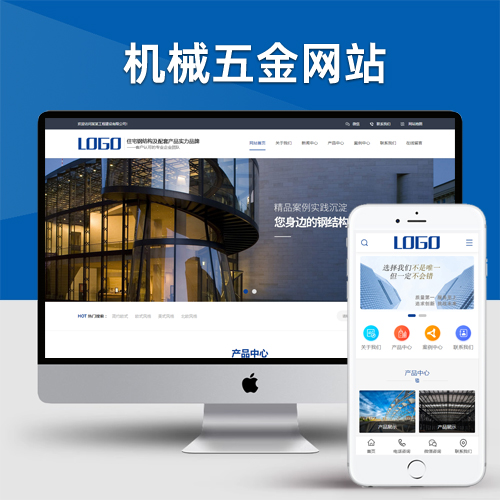 (PC+WAP)蓝色钢结构机械五金网站pbootcms模板 营销型工程建筑基建网站源码下载