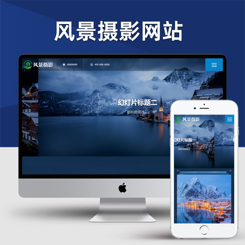 (自适应手机端)深蓝色风景摄影网站pbootcms模板 户外风景摄影机构网站源码下载