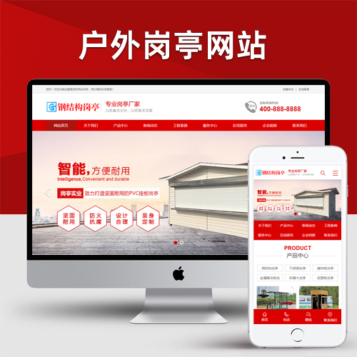 (PC+WAP)钢结构岗亭营销型pbootcms网站模板 红色户外岗亭网站源码下载