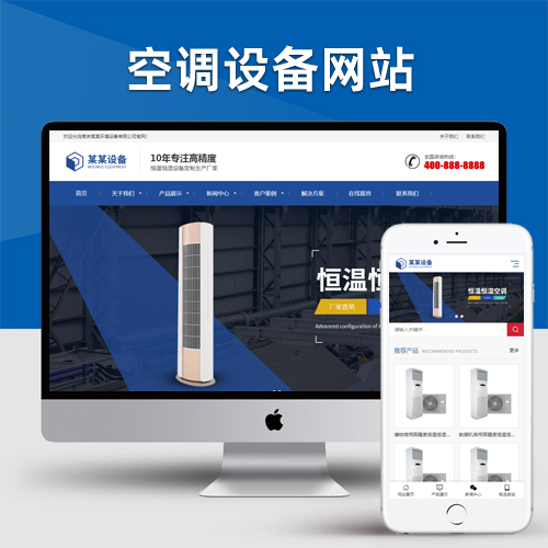 (自适应手机版)响应式营销型恒温恒湿机环境设备类网站pbootcms模板 蓝色营销型空调设备网站源码下载
