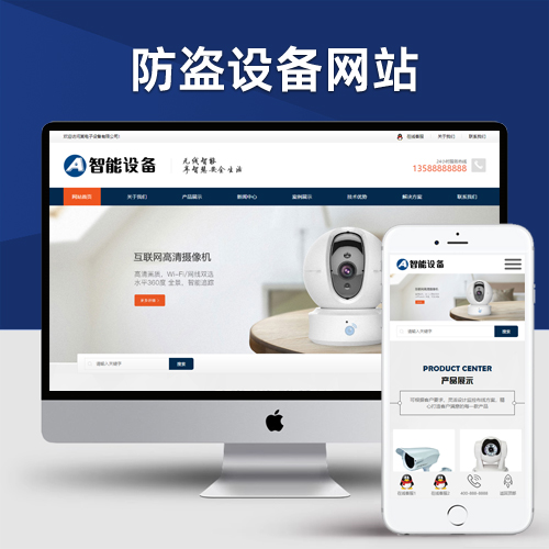 (自适应手机端)响应式智能摄像头设备pbootcms网站模板 蓝色安全防盗电子设备网站源码下载