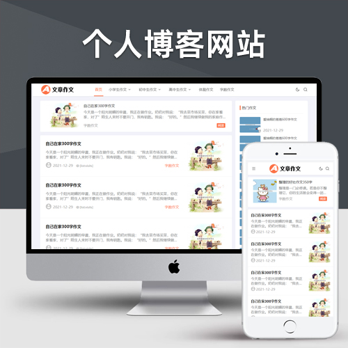 (自适应手机端)响应式小学初中作文网站pbootcms模板 文章资讯论文作文个人博客网站源码下载