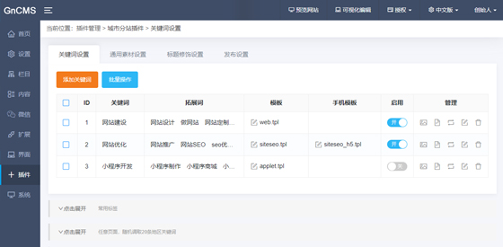 使用曙光建站全网营销平台网站后,可开启分站城市分站,SEO效果神奇
